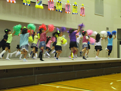 2014/10/04司会は、6年生コンビで元気にスタート。「にじいろ♡クローバーZ」によるかわいいダンスで、会場は一気に盛り上がりました。