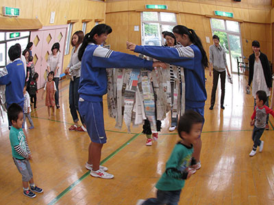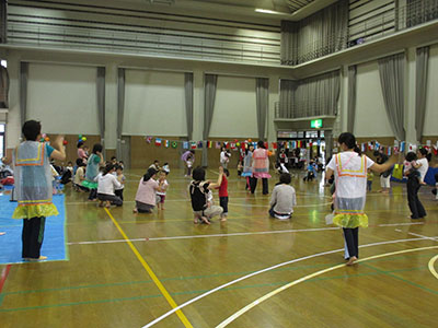 2014/09/27毎年恒例の市民センター・児童館まつり、今年も多くの方々にご来場いただき盛大に開催されました。まつりオープニングの中で行われたダンスでは、「にんじゃりばんばん」の曲に合わせて小学生の女の子達が息の合った元気な姿を披露し、会場からたくさんの拍手をいただいていました。児童館部分の遊びのコーナーは、テーマである「中山忍者村」に合わせたブースが設けられ、参加した子どもたちは「すいとんの術」や「忍法!イライラ棒」などの遊びや工作などを、それぞれ楽しんでいました。地域の協力団体の皆様、ボランティアスタッフの皆様、たくさんのご協力ありがとうございました!