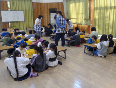 当日は34名の小学生の参加と、子育て支援クラブの方もお手伝いに来てくれました。