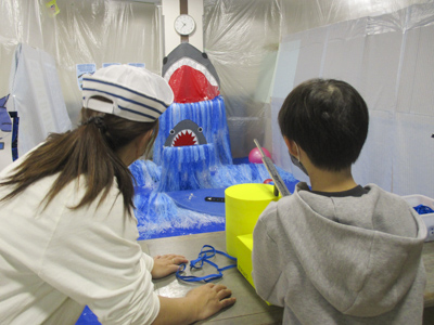 次は刀作り。長い新聞紙を巻くのに苦戦していましたが、民生委員の方に丁寧にコツを教えてもらい、ガムテープを貼ってかっこいい刀ができあがりました。