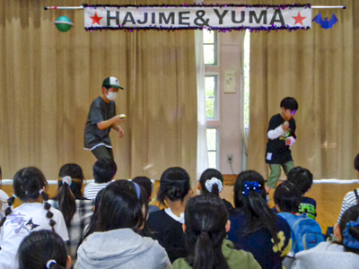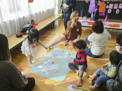 パーティーではペープサートの上演やハロウィンにちなんだミニコーナー、ママのピニャータ割りなどを行いました。