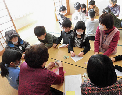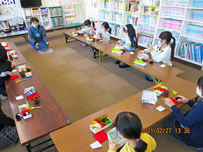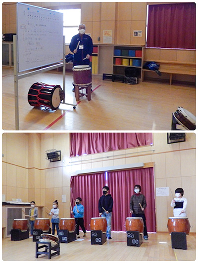 2021/02/27日本の伝統文化「和太鼓」を、子ども達に体験させる目的で行いました。30分間という限られた時間の中で、太鼓の基礎(構え方、バチの握り方、叩き方)や、強弱の付け方等の太鼓の決まり事を一通り習った後は、1曲を通して演奏する為に、メインテーマやエンディングを部分練習し、最終的には、講師の加茂綱村太鼓のオリジナル曲「宵かぐら」を全員で合奏して終了となりました。太鼓を初めて叩く小学生が殆どで、みんな真剣に太鼓を叩いている姿が印象的でした。このことがきっかけとなり、他の日本文化にも興味を持って貰える様に願っています。この「太鼓でドンドン♪」は、3月にも児童クラブ限定で行います。