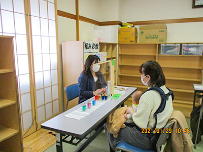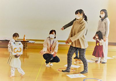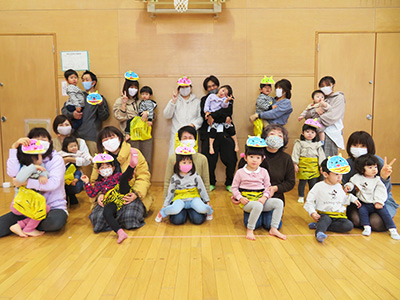 2021/01/292、3歳児親子登録制の幼児クラブ「なないろ にゃんちゃん」で「節分あそび」をしました。