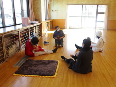 2020/12/17雪が降り積もる日でしたが、7組の幼児クラブの親子が来てくれました。