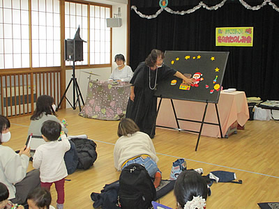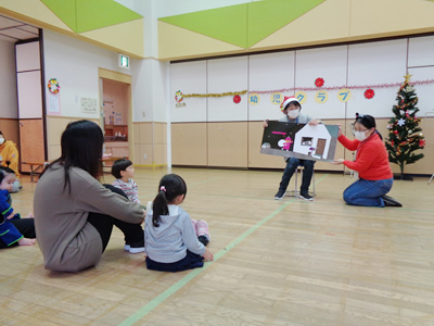 コンサートが終わると、今度は職員によるパネルシアターの披露がありました。題目は「わたしのクリスマスケーキ」でした。