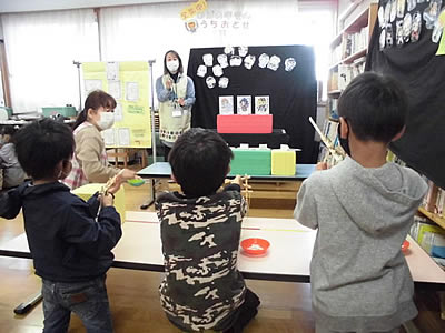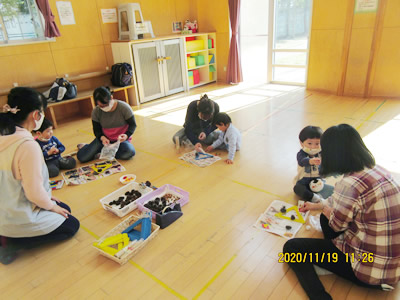 2020/11/21気持ちの良い秋晴れの中、小学生の皆さんを対象にした行事としては今年度初めてとなる、『じどうかんへようこそ』が開催されました。オープニングでは、児童館のルールについて○×クイズを行い、皆さんに児童館のことを知ってもらったらいよいよ各コーナーのスタートです。コーナーは、プラバンづくり、射的、運動あそび、児童館ならではのボードゲームなど様々です。子どもたちは、集中して工作に取り組んだり、景品ゲットを目指して友達と協力したり、自分の記録をより良いものにしようと何度も挑戦したりと、思い思いの遊びを満喫していました。実施時刻を3回に分け、各回に定員を設けての開催となりましたが、どの回も館内はたくさんの笑顔であふれていました。
