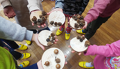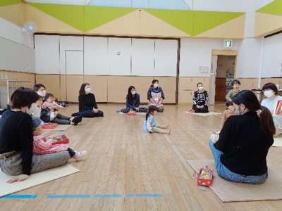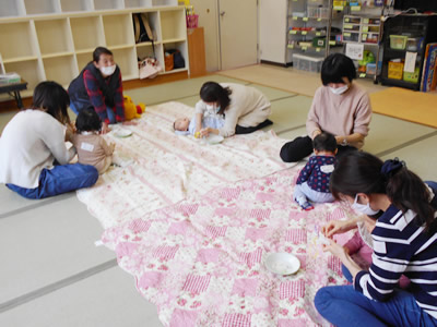 2020/11/18幼児クラブ親子8人でさつまいも掘りをしました。秋晴れの中、長靴・軍手を付けていもほり開始です。初めは土まみれになることを気にしていましたが、土の中からさつまいもがチラッと見えてくると「あった!」と夢中になって掘り始める様子が見られました。根っこでつながったいも、なかなか掘り出せないほど大きないも、かわいいちびっこいもなど、いろいろな形のいもがあちらからもこちらからも顔を出しました。その度に、いも畑は歓声に包まれました。一番大きないもは1.8kgもありました!「1週間ほど天日に干してから食べると甘みがでますよ。」とお話をし、おみやげに持ち帰っていただきました。スイートポテトにてんぷら、どんなお料理に変身するか楽しみです。