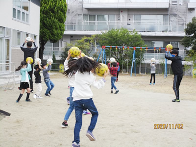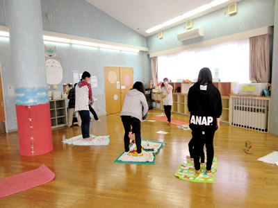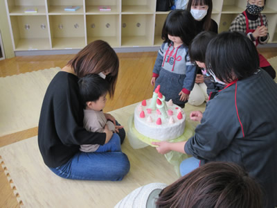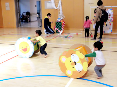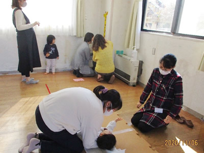 2020/11/06今回の「貝っこタイム」は、10ケ月から2歳まで合わせて6組の親子が参加しました。挨拶と自己紹介をした後、音楽に合わせて体操やふれあい遊びをしました。お母さんに体や顔をタッチしてもらうと、子どもたちの表情も和らぎました。続いて、身長・体重の測定です。キリンの身長計の前に立ち、ピンと背筋を伸ばしたり、体重計にゴロンと寝かされたり…国見地区民生委員児童委員協議会のお二人にご協力頂き、スムーズに測定を終えることができました。最後は親子で簡単工作です。ストローを吹くと先につけたビニール袋が膨らんでおばけが出てくるおもちゃを作りました。ふわふわ~っと大きくなる可愛いおばけを見て、子どもたちは大喜び!「もういっかい!」とお母さんにお願いして、何度も楽しんでいました。初めての参加で緊張気味の親子も、活動が終わる頃には笑顔も見られ、楽しいひと時となりました。
