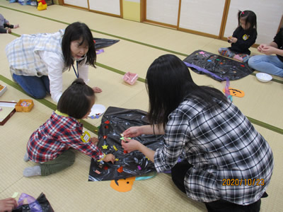 2020/10/23クリエイティブメモリーズ公認アルバムアドバイザーの吹谷先生をお招きして、アルバムカード作りをしました。参加者の方には、3~5枚の思い出の写真を準備していただき、お子さんが生まれた時の写真や七五三・家族との写真など様々な記念の写真を持ち寄っていました。先生が準備してくださったアルバムに思い出の写真を貼りながらお母さん同士の会話も弾み製作に取り組んでいました。最後は写真にコメントを書き足し、先生は「コメントを書くことによって作った人も見た人も心の栄養になっていくんですよ」とおっしゃっていました。日々の家事や子育てで忙しいお母さんたちにとって、心が安らぐ貴重な時間となりました。