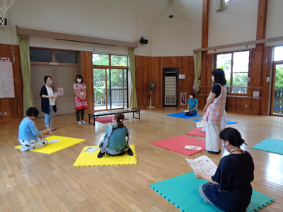9月のくまっちー1は、講師に滿園依李氏をお招きして「バレトン」に挑戦しました!バレトンとはニューヨーク発の裸足で行うバレエワークアウトです。バレエと聞いて優雅でスローな動きをイメージするかもしれませんが、なかなかの運動量に皆さんビックリ!「身体を動かし続けること」を目標に、ママたちもスクワットやウエストをひねる動きなど全身を使った運動で汗を流していました。お子さんたちは音楽を聴きながらおもちゃであそんだり、ママの頑張っている姿を足元で見守りながら応援♪参加した皆さんも「自分の運動時間をなかなか持てないのでいい機会でした」「思いっきり身体を動かせて楽しかったです!」という声が聞かれました。