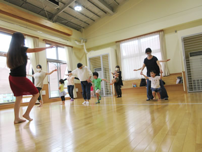 参加した2・3歳の子ども達は、お母さんと一緒に音楽に合わせて楽しく、そして一生懸命講師の方の振りを真似して踊っていました。本格的なダンスに挑戦し、みんな上手に踊れていました。