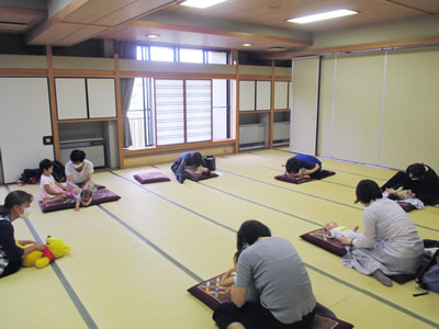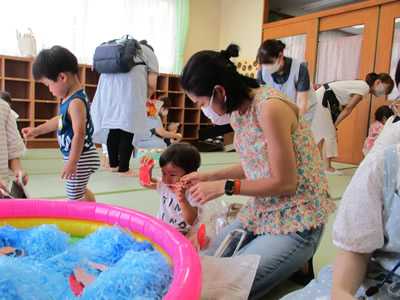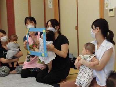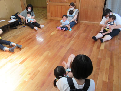 2020/08/31今年度に入ってから初めての乳幼児親子行事を開催しました。支倉保育所の髙橋伸子先生をお招きし、前半は手あそびや読みきかせ、後半は育児で気になっていること等の情報交換をしました。手あそびでは、親子で夢中になって一緒に手を動かし、ふれあいあそびの時には「キャッキャ」と子どもの喜ぶ声にお母さんの笑顔も見られました。情報交換の時間では、子どもの月齢ごとの様子や悩みを共有し、先輩ママの経験やアドバイスをききあう場面もあり、穏やかな雰囲気の中で交流することができました。参加者からは、「次もまた参加したい」との声もあり、親子ともに楽しい時間を過ごして頂けました。