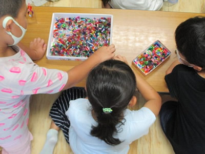 2020/08/28今年は暑~い8月となりました。児童クラブの子どもたちは、新型コロナ感染症対策の為、室内ではマスクを着用して過ごしています。熱中症に気を付けながら、遊戯室でバドミントンやキャッチボールなどの運動遊びを元気いっぱいに行っています。また、室内でも出来る集団遊びが人気です。子どもたちが大好きな「うさぎの引っ越し」は、最初にフラフープの陣地に入った状態で始めます。そして、オニの掛け声で別の陣地に移動しなければいけません。移動中にタッチされたらオニを交代するルールの遊びです。1年生もルールをしっかり覚えて、仲良く遊びを楽しんでいます。コロナにも暑さにも負けず、元気いっぱいな子どもたちの姿をこれからも大切に見守っていきます。