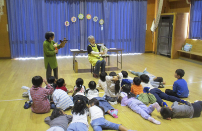 2025/10/17読み聞かせボランティア“ひなたぼっこ”さんご協力のおはなし会。