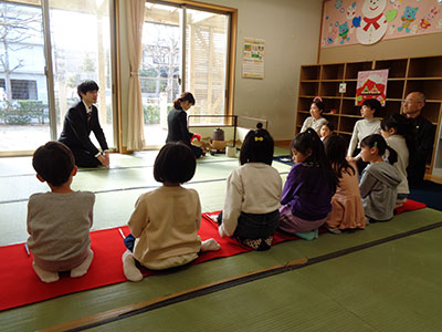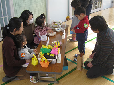 2020/02/18加茂地区社会福祉協議会の皆さんのお手伝いをいただきながら、お店屋さんとお客さんに分かれてお店屋さんごっこをしました。