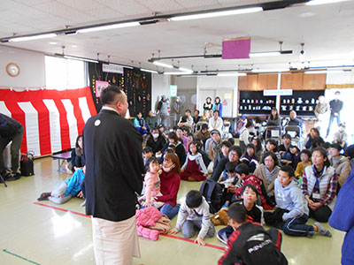 2020/01/18地域の中柵永楽会さんにご協力いただき、「節分まつり」を開催しました。オープニングは、児童館で活動しているダンスクラブ「ハッピースマイルキッズ」のダンスと子供けん玉名人のけん玉でした。ダンスや技に拍手喝采でした。昔遊びは永楽会の皆さんと一緒にこま回し、お手玉、福笑い、豆つかみ、工作、おみくじなどを楽しみました。「上手だね。」「器用ね。」と皆さんに褒められ、ちょっと緊張していた子どもたちも嬉しそうな笑顔になりました。豆まきの時には鬼が登場。やっぱりちょっと怖かったけれど、みんなの豆で鬼を払うことができました。最後はお楽しみ飴すくい。たっぷり遊んで、とても楽しい行事になりました。