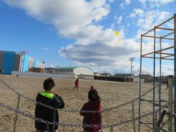 「カメイアリーナ仙台スポーツ」より講師の方をお招きし、「ニュースポーツ」を体験しました。準備体操が始まると元気にジャンプをして歓声をあげながら楽しむ子ども達。