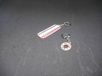 「わぁカワイイ!」「どれにしよう?」等々参加者は沢山用意されたデコレーションする為の材料を見て、まず目を輝かせました。今回のキーホルダーはマスキングテープ、シール、ネイル等に使うミニビーズ等がデコ材料でした。プラバンを好みの形に切った後焼いて縮ませ、材料を自由に貼り付けました。その後UVレジン液を塗りUVライトを当てて固まったら完成。作品はどれもステキでした。一人2個ずつ作ったのですが、デザインや材料選びに時間がかかり、予定よりもかなり遅れての終了となりました。母親達が作業に没頭している間、同室託児されていた子どもたちはDVDを観たりうたた寝をしながらグズることもなく待っていてくれたのでした。大人のリフレッシュタイムとなりました。