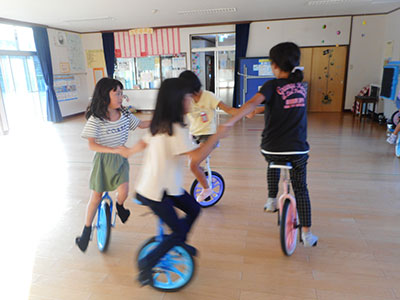 2019/09/2610月の児童館まつりで一輪車の演技を披露する小学生メンバーの練習会がありました。昨年までは、館内で定めた検定の8級以上の合格者を対象にしていましたが、今年は7級以上にランクアップし、2年生から5年生までの7名で練習に励んでいます。これまでしていなかった技も多く難易度が上がっていますが、前向きに楽しみながら頑張っている姿はとても素敵で、7級まで達していない子どもたちの目標にもなっています。練習は週1~2回行っていますが、それ以外の日も児童館に来て自主練習をする自由来館児も多いです。今年のメンバーの姿を見て、来年は自分も参加するぞ!と意欲を燃やしている1、2年生も多いのです。