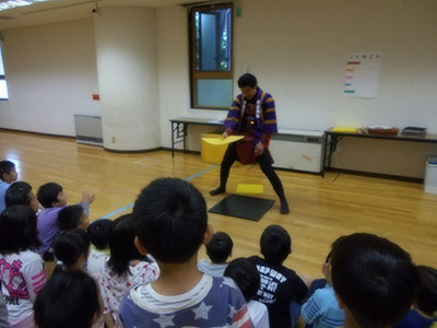 2019/06/12去年のわくわくタイムで大好評だったこま侍が、今年も上杉児童館に来てくれました。前半はこま侍が、こまとけん玉の素晴らしい技とパフォーマンスを披露。初めて見る1年生は目をキラキラ輝かせながら、大きな歓声を上げていました。後半はこま侍が、こまの回し方を基本から教えてくれました。とても丁寧に教えてくださり、初めてチャレンジする子ども達全員が、上手に回せるようになりました。そして最後は、こま侍と小学生のこま回し対決!1回目はこまが全くブレないこま侍の勝利でしたが、2回目は小学生2人がこま侍のタイムを上回り、まさかの大勝利でした‼思いがけない大番狂わせに、上杉の子ども達は大喜びでした。