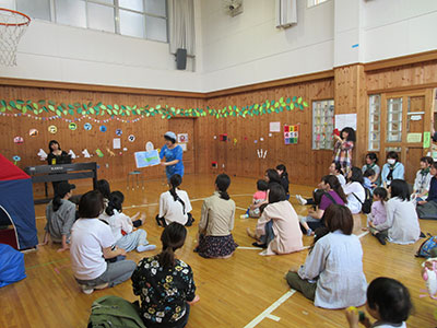 2019/05/30にこちゃん人形劇は乳幼児親子さん対象の行事で、県内各地で活動されている劇団21さんに来ていただきました。まずはリズミカルな「カッパなにさまカッパさま」。続いてくすっと笑えた腹話術「しずちゃんだいちゃん」。ぶらぶら人形とペープサートでは、息の合った掛け合いが面白くて笑いながら見いっていました。そしていよいよ人形劇「やんすけとやんすけとやんすけと」。ストーリーにひき込まれみんな夢中です。不思議なつぼから、おにぎりとやんすけが次から次へと出てくる場面は、わくわくと驚きで大歓声に包まれました。楽しい時間はあっという間でフィナーレとなり、たくさんのしゃぼん玉に見送られました。劇団21さんの創り出す特別な空間で、人形による物語の世界を満喫しました
