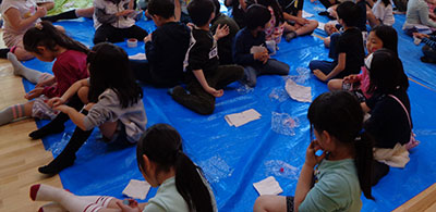 2019/05/08今月の若チュウタイムはスーパーボールづくりに挑戦!行事が始まる前から小学生はウキウキ、ソワソワ。楽しみでなりません。50名を超す参加者が集まり、7グループに分かれ作業開始。まずは塩水に好きな色をつけるところからです。「どんな色がいいかな?」と悩みながら、それぞれ試行錯誤。「色を混ぜたら変な色になった」という子もいれば、「グラデーションきれいにできた!」とうれしそうに話す子も。自分の色ができると、次の工程へ。洗濯のりを入れてかき混ぜ、ラップで丸め、乾燥させて、オリジナルスーパーボールの完成!完成後は自分の作ったもので遊んだり、友達同士やグループで見せ合い、上手な子の真似をする等、工夫しながら楽しんでいました!