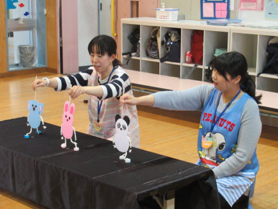 子育て支援クラブさんと一緒に、「ウェルカムジーセン」を開催しました。“トーキングゲーム”を使った職員自己紹介、児童センターにまつわる○×クイズ、子育て支援クラブさんの変身クイズ、児童クラブのお友だちによる“コマ”“けん玉”“縄跳び”