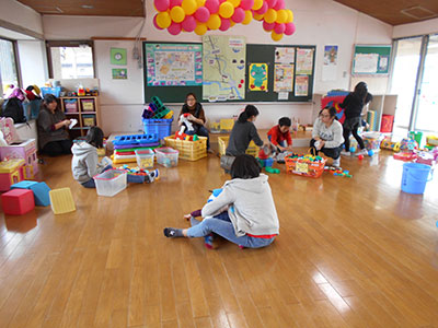 2019/01/05大竹三大行事第三弾お正月恒例「もちつき会」。早朝から子育て支援クラブや手作りの会等、沢山の地域の方々がもちつき会の準備に大忙し。10時30分、お囃子に合わせ獅子舞が登場。飛び入り参加の小学生と親子獅子舞を演じ会を盛り上げました。オープニング後はコーナー遊びの開幕。もちつき体験をはじめ団子の木、おみくじ、コマの絵付け、イライラ棒、カルタ・けん玉・お手玉などの昔遊び等盛りだくさん。団体競技初笑い「鏡餅運び競争」を皆で楽しんだ後はお餅会食会。子育て支援クラブの方々があらかじめ漬け込んだ児童館産の白菜や大根の漬物をおかずにみたらしとあんこのお餅をおかわりしながらおなかいっぱい頂きました。最後は大竹町内会会長の一本締めでおひらきとなりました。