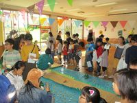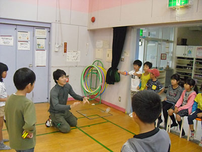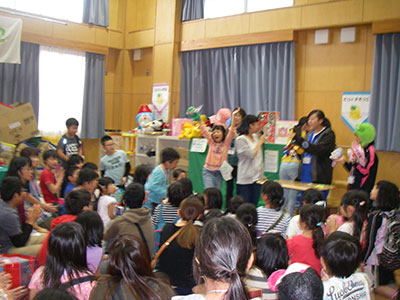 2018/10/13掲載文:今年11年目を迎える南吉成児童館の伝統行事「とり+かえっこ」。南吉成の子どもたちが毎年楽しみにしています。まずは家にある使わなくなったおもちゃを持ってきて銀行で「かえるポイント」に交換。このポイントが新たなおもちゃをゲットする資金になるのです。銀行に持ち込まれたおもちゃは問屋へ運ばれます。そして問屋で値段をつけられてお店に出される品物になるのです。お気に入りの品物を見つけたら「かえるポイント」で購入します。ポイントが足りない時はどうするの?そんな時はハローワークへ行ってアルバイトを紹介してもらいます。お仕事をするとお給料(かえるポイント)がもらえます。自分の力でポイントをゲットするのです。とり+かえっこ実行委員会で子どもスタッフたちが考えたゲームに参加してポイントをゲットする方法もあります。今年の実行委員が考えたゲームは「ピコピコハロウィン」「ハロウィンガシャドクロ」「バトルソックス」「トリックオアトリート~お菓子くれなきゃいたずらしちゃうぞ~」「ごほうびミックス」「魔女の館」です。飛び出すハロウィンキャラクターや魔女の占いなど、ドキドキしながらハロウィンの雰囲気いっぱいのゲームを何度もチャレンジしていました。子育て支援クラブの「ボラカフェ」も大人気。ドリンクとお菓子でひとやすみ。カフェはアルバイト先としても人気のお仕事です。笑顔でお客様にジュースを渡します。「とり+かえっこ」の最後は「オークション」。たくさん貯めたポイントで人気のおもちゃを競り落とすのです。「楽しかった~!また来年来るね」みんなが笑顔で帰っていきました。そして手際よく仕事をこなす中学生、小学生の上学年スタッフの姿に「私も来年はスタッフをしてみたい!」と下学年の子どもたちが憧れのまなざしで見ていました。スタッフのみなさん、地域のみなさん、ありがとうございました。子どもたちみんなで力を合わせて作った「とり+かえっこ」大成功です!!