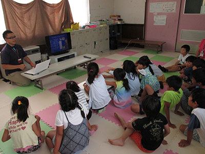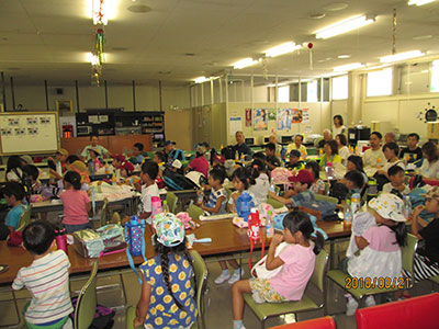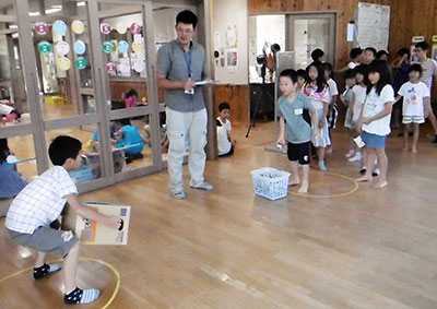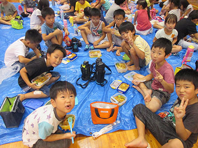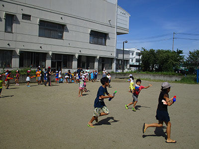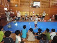 2018/08/22夏休み最後のお楽しみ行事として、今年もすいかわりを行いました。夏の暑さと共に子どもたち大きな歓声と熱気に包まれながら、すいかわりのスタートです。子どもたちは3チームに分かれ、自分のチームのすいかが割れるように「もっと右」「まっすぐ」等応援も暑さに負けず盛り上がり、熱気と笑顔に溢れていました。小学生だけではなく、幼児親子さんも遊びに来ていた為一緒に参加し、一生懸命な姿がとても微笑ましく感じました。楽しく盛り上がったあとはすいかを美味しく食べました。今年のすいかは昨年より大きく何度もおかわりする子もいました。民児協の皆さん今年もありがとうございました。子ども達も、夏の思い出になったようです。