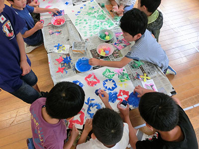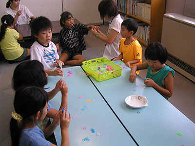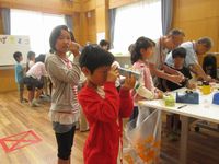 2018/08/10「お出かけ隊」は小学生に身近な自然に興味を持ってもらうように、グリーンハウス勾当台のみなさんに協力をいただきながら活動しており、今回はテラリウム作りに挑戦しました。屋外で集めた材料をガラス瓶の中に自由に詰め、エアプランツや苔、お花や貝がらなど様々な中身を選ぶ楽し気な子どもたちの姿が見られました。「これ見て」、「これはどこに入れたらいいかな」と質問をする様子は真剣そのもので、ガラス瓶の中は一人ひとりの個性で溢れていました。材料に蝉の抜け殻を使う子もおり、夏の思い出がたくさん詰まったテラリウムが完成しました。今後も協力をいただいて、児童館の外にある公園やまちなかの自然に触れて遊びを発展させていきたいと思います。