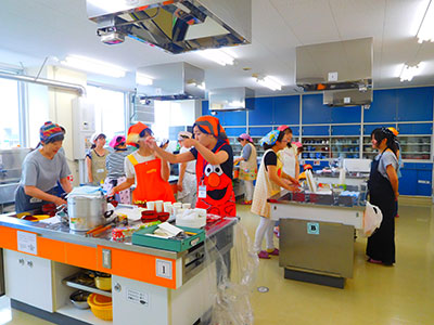 食育の面から子どもたちの健康な体力づくりを支援する企画として、管理栄養士の髙橋さんをお招きし、簡単なおやつの作り方を教えていただきました。2種類の蒸しパン(タマネギ・ハム・チーズ入りのものとサツマイモやレーズンの自然な甘さをいかしたもの)やニンジンを丸ごと使ったゼリーを作りました。「どちらも栄養たっぷりで幼児の食事にぴったり!」とママたちに大変好評でした。今回、六郷地区民生委員児童委員協議会のみなさんが託児をしてくださりました。子どもたちはたくさん遊んで待っていたのでおなかがペコペコ。試食ではママが作ったおやつを美味しそうにほおばる様子が印象的でした。