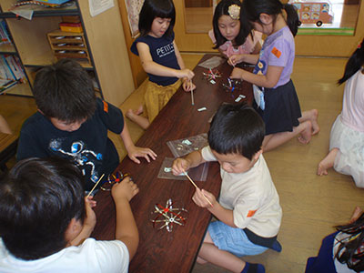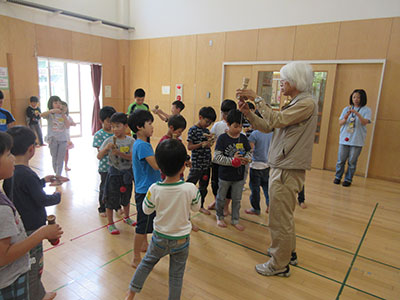 毎月テーマを設けて、様々な遊びを体験する「エンジョイキッズ」シリーズ。今月は、「けん玉」でした。5月28日に谷田部武男先生をお招きして、けん玉教室を開きました。そこで、珍しいけん玉や難しい技の披露、けん玉の指導や検定を通して、けん玉に興味をもった子どもたちが、6月中、けん玉に取り組みました。「もしもしカメよ♪」と曲に合わせて中皿と大皿を交互にのせる技を軽々とこなす子もいました。最終日の6月27日には、再び谷田部先生にご指導をいたただき、参加した子どもたちは、さらに難しい技に挑戦しようと、頑張って練習していました。集中力を高められるといわれているけん玉。これからも、日常的に取り組み、親しんでほしいと思います。