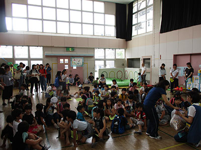 今年のセンターまつりは「ナナオンズ大作戦!」と題しまして、多くのボランティア、来館者の方に来ていただき、大盛況のうちに終えられました。オープニングでは子育て支援クラブはっぴーさんの毛虫のジェンカ、幼児クラブのポンポン体操、小学生のダンスと大変盛り上がりました。また、はっぴーさんの作ってくれた玉こんもおいしくて大人気!様々な遊びのコーナーでは子供たちが高得点を狙ったり、仮装して写真を撮ったり、静かにお話に聞き入ったりと楽しんでいました。参加した子はたっぷり遊んでお土産に水ヨーヨー、ポップコーンをもらい、満足して帰っていきました。