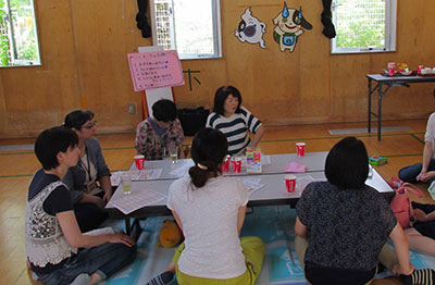 今年度、子育て支援クラブと共催で開催予定の「め・だまらんど」。「め・だまらんど」は大人のための息抜きタイム。今年度初めは「メディアロマ~究極の美容ジェルを作りませんか~」を開催しました。香りではなく、治療を目的としているメディカルアロマを体験。講師は支援クラブの会長でした。ジェルやクリームを作りながら、参加した方はいろいろな雑談の中で情報交換も楽しんでいました。その雑談の中で子どもに安全なものを使いたいという話になり、その場で「虫よけジェル」を作っていかれました。