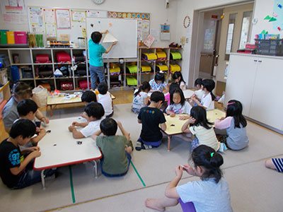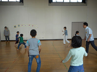 2018/05/19今年度初めての親子行事。初めてドッジビーをする大人も多い中、4月から毎日の遊びや「毎金チャレンジ」で練習してきた子どもたちは、大はりきりでした。大人が取りにくい足もとを狙って投げたり、前に出てキャッチしたり、敵対するお父さんお母さんを狙ったりと、沢山のチャレンジがありました。「ナイスキャッチ」や「ドンマイ」などと声をかけ合い、親子共に和やかな雰囲気で行うことができました。子どもたちからは「楽しかった」「もっとやりたい」という声を聞くことができました。保護者からも「楽しかったです」「子どもの様子を見ることができてよかったです」という感想がありました。親子で一緒に汗を流し、楽しいひと時を過ごすことができました。