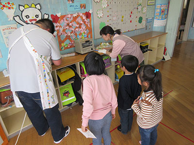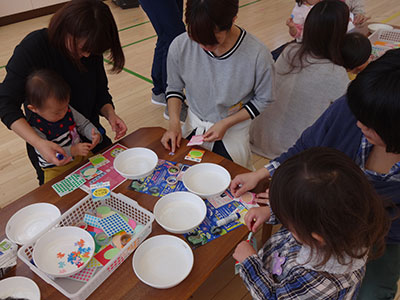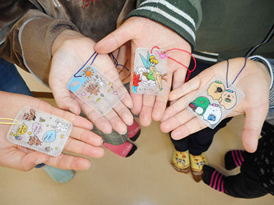 2018/04/18毎年大人気の行事、チャレンジ・ザ・かむりくん「プラバンキーホルダー」作りを行いました。当日は小学生低学年から高学年までたくさんの参加があり、賑わっていました。まずはじめに自分の好きな絵柄を選び、マジックペンで線を描くところからスタート。絵がずれないように慎重に描いた後は色鉛筆で色塗りです。今回は予めプラバンを削ってあったのでとてもきれいに色付けできました。次にいよいよオーブントースターで焼く作業です。みるみる間にプラバンが縮んでいく様子に子供たちは興味津々。出来上がるとどの子も嬉しそうに「できた!」と大喜び。早速、名札につけたり、「お母さんへのプレゼントにする!」とカバンにしまったりと皆、自分の力作に大満足の様子でした。