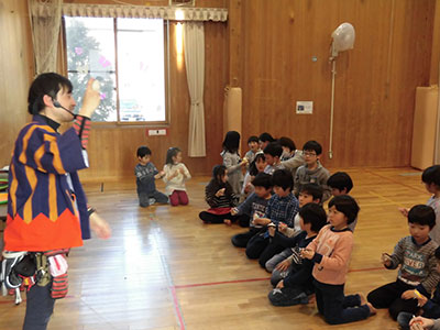 2018/03/07中田こま道場にこま侍さんがやってきました。こま侍さんの華麗なパフォーマンスにみんな大興奮!100名近いお友達が息をのんで次々に繰り出される技に見入っていました。技が成功する度に大きな歓声と拍手が沸き起こりました。パフォーマンスの後は、いよいよ実践です。回せる子もそうでない子も基本からきちんと学びました。回せなかった子も、こま侍さんに直接アドバイスを頂いて、コツをつかんだら、あっという間に回せるようになりました。最後はみんなで誰のこまが一番長く回り続けるか対戦しました。見事チャンピオンに輝いた子はなんと1年生でした。行事の後も毎日こまに励む姿が見られ、めきめき腕を上げています。次の対戦が楽しみです。