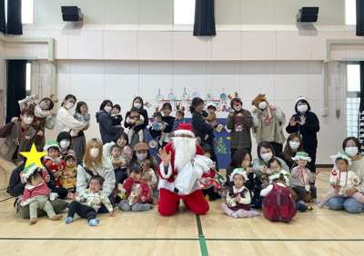 サンタクロースからプレゼントを受け取り、希望者はクリスマスツリーを背景に一緒に写真を撮りました★