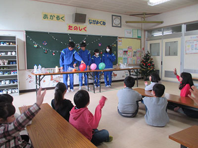 2017/12/25 クリスマスの25日、南小泉中学校ブラスバンドの皆さんをお招きして、児童館3階の市民センターホールでクリスマスコンサートを開催しました。乳幼児さんから小中学生、地域のみなさんを含めた98名が、ホールに響く心地よいメロディーに包まれて、クリスマスの半日を過ごすことが出来ました。
