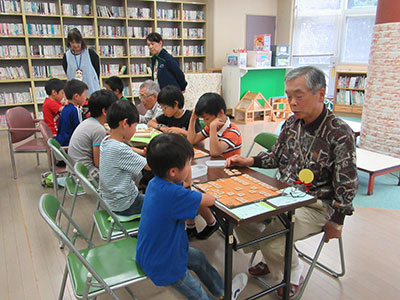 2017/06/14仙台シルバー人材センター吉成・南吉成班の皆さんにお手伝いいただき、今年度より「将棋クラブ」を開催しています。昨年までの将棋月間から発展した、一年を通してのクラブにも地域の方々が快く協力してくださいました。藤井4段の活躍で将棋の話題が日々聞かれ、関心を高めている小学生も多いと思います。高学年の参加者も多く、活気あふれるクラブとなっています。自己紹介では高学年の次に低学年も立派に出来ました。対局ではみんな真剣な表情で一局一局、丁寧に駒を動かします。強くなりたい、覚えたい等想いは様々ですが、共通点は「将棋が好き」という気持ちです。粘り強く考え、将棋の「醍醐味」を味わい、将来の藤井4段を目指します。