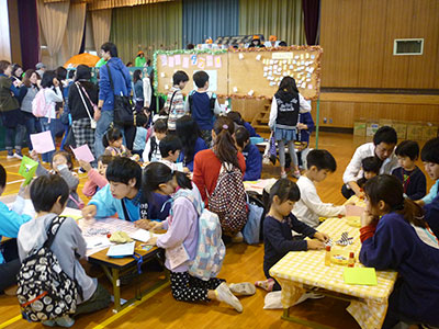 児童クラブと自由来館合わせた64名の子ども達は、いつもと違う様子に興奮気味にはしゃいでいました。