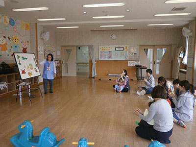 2017/05/08昨年度小学生向け行事でお願いした英語教室の先生をお招きして、今回は幼児親子向け「英語であそぼう」を開催しました。