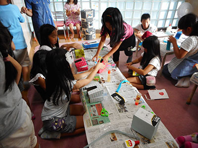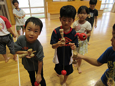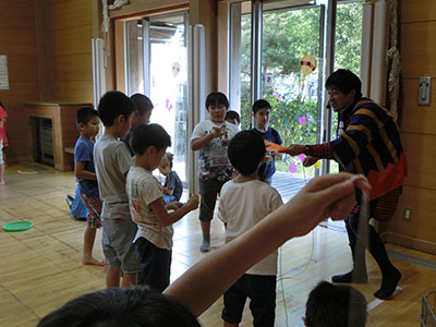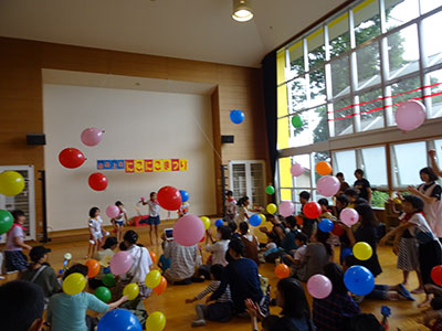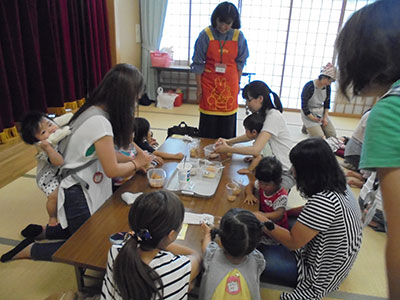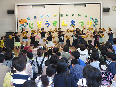2017/09/16毎年秋のお楽しみ「山の上のニコニコまつり」に、たくさんの乳幼児親子が遊びにきてくれました。簡単工作や楽しい遊びのコーナーに、子どもたちの笑い声で館内はとても賑わいました。エンディングは、小学生のダンス発表。今年は「ハピネス」と「恋そめし」の2曲を披露しました。カッコよさと可愛いらしさをとても上手に表現し、会場からたくさんの拍手をいただきました。このおまつりでは、民生委員や子育て支援クラブなど地域のたくさんの方々にご協力いただき、一緒に盛り上げてくださいました。小学生スタッフも夏休み中から話し合いを重ね、企画と準備をしてきました。おまつりが終了した時は参加親子もスタッフも、みんなの笑顔でいっぱいの児童館でした。
