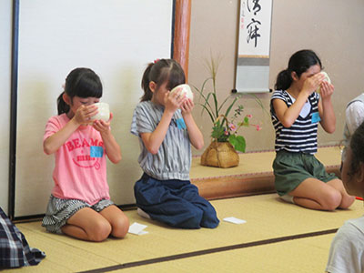 片平市民センターの茶室を会場に、18名の小学生がお茶を点てる人といただく人に分かれての活動になりましたが、高校生のサポートもあり「落ち着いていて、とてもお上手ですね」と先生からおほめの言葉をいただきました。
