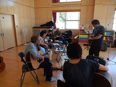 今年度初の『ギターにチャレンジ』(年2回)。今回は小学生1名・一般4名の方々に参加いだき、終始和やかな雰囲気での行事となりました。課題曲は、『若い広場』(NHK連続ドラマ『ひょっこ』の主題曲)。