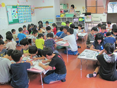 大沢児童館まつり「わくっ!どきっ!おおさわの森でおおはしゃぎ」を行いました。不思議な広場が体育館に出現。虫、池、植物、ドラゴン等森の仲間といっしょに遊び、森のコインを集めてまわるとごほうびをもらえるしくみがで、子どもたちがにぎやかに楽しい時間を過ごせたようです。その他にも遊びが盛り沢山だったおまつり。大人の方はハンドマッサージでリラックスをし、幼児の遊べるコーナーも人気でした。リトルスターバトンの皆さんの演技も、児童クラブのみんなが踊った「ココナッツ」も素敵で、最後の抽選会まで参加して下さる方が大勢いらしたことに感謝を申し上げます。