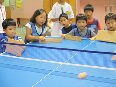 2017/08/24今回で3回目となる“シニアと卓球練習会”。普段スポーツを直接教わる機会が少ないからか、とてもリピーターの多い行事です。子どもたちは始まる前から遊戯室に並んで今か今かと待っている様子が見られました。