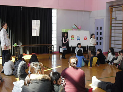 小学生のお友だちが乳幼児さん向けに遊びを用意し、乳幼児親子さんと交流しました。パネルシアターや工作シアター、ハンカチ落とし風の遊びなどで楽しみました。行事の後も小学生と乳幼児さんが一緒に遊ぶ姿がみられました。