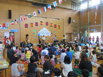 今年は、ハンバーガーショップのヤギドナルドをはじめ、スイーツ、メガネ、回転寿司、本屋さんなど、全部で12のお店がありました。どのお店も売り切れ続出の大好評!小学生と幼児親子のほほえましい交流がたくさん見られました。30度を超える猛暑の中、集まったみなさんの協力のおかげで、思い出に残る夏まつりとなりました。